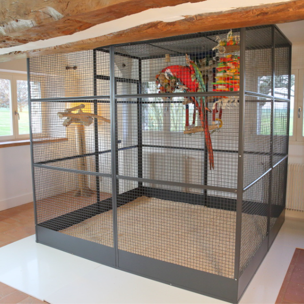Les volières intérieures peuvent être utilisées pour abriter des oiseaux de compagnie ou pour la reproduction d'oiseaux exotiques. Elles nécessitent une maintenance régulière pour assurer un environnement propre et sain pour les oiseaux, ainsi qu'une surveillance pour prévenir tout risque de fuite ou de danger pour les animaux et les personnes.